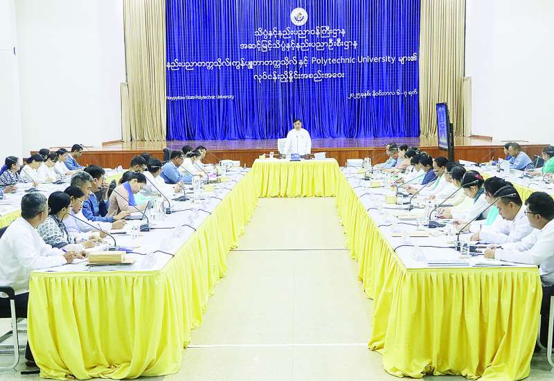 သိပ္ပံနှင့် နည်းပညာဝန်ကြီးဌာန၊ အဆင့်မြင့်သိပ္ပံနှင့် နည်းပညာဦးစီးဌာနရှိ နည်းပညာတက္ကသိုလ်၊ ကွန်ပျူတာတက္ကသိုလ်နှင့် Poly-technic University များ၏ လုပ်ငန်းညှိနှိုင်းဆွေးနွေးပွဲကို ယနေ့နံနက်ပိုင်းက Naypyitaw State Polytechnic University အစည်းအဝေးခန်းမ၌ Hybrid စနစ်ဖြင့် ကျင်းပသည်။