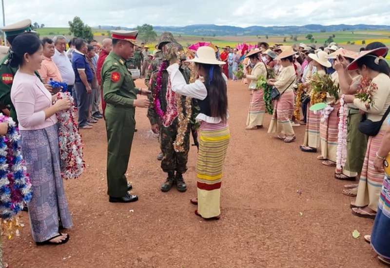 ပြည်သူများအား နှိပ်စက်ညှင်းပန်း၍ ဒေသဖွံ့ဖြိုးတိုးတက်မှုကို ချွတ်ခြုံကျစေသည့် အကြမ်းဖက်လုပ်ရပ်များကို လုပ်ဆောင်ခဲ့သော တောင်ခမ်းမြို့၊ နောင်ချိုမြို့၊ ကျောက်မဲမြို့၊ သီပေါမြို့နှင့် အဆိုပါဒေသတစ်ဝိုက်တို့ရှိ လက်နက်ကိုင်အကြမ်းဖက်အဖွဲ့များနှင့် PDF အမည်ခံ အကြမ်းဖက်အဖွဲ့များအား ရွပ်ရွပ်ချွံချွံတိုက်ပွဲဝင်၍ အဆိုပါမြို့များကို ဒေသခံပြည်သူများ၏လက်ဝယ်သို့ ပြန်လည်အပ်နှင်းနိုင်ခဲ့သည့် အောင်ပွဲရ ရှေ့တန်းပြန်တပ်မတော်သားများအား နိုဝင်ဘာ ၅ ရက် နေ့လယ်ပိုင်းတွင် အရှေ့မြောက်တိုင်းစစ်ဌာနချုပ် တိုင်းမှူး ဗိုလ်မှူးချုပ်အေးမင်းဦးနှင့် အဖွဲ့ဝင်များ၊ အရာရှိ၊ စစ်သည်၊ မိသားစုဝင်များ၊ ဌာနဆိုင်ရာ တာဝန်ရှိသူများနှင့် ဒေသခံတိုင်းရင်းသား ပြည်သူများက သီပေါမြို့နယ်၊ မန်လီကျေးရွာရှိ နယ်မြေခံတပ်၌ ကြိုဆိုဂုဏ်ပြုကြသည်။