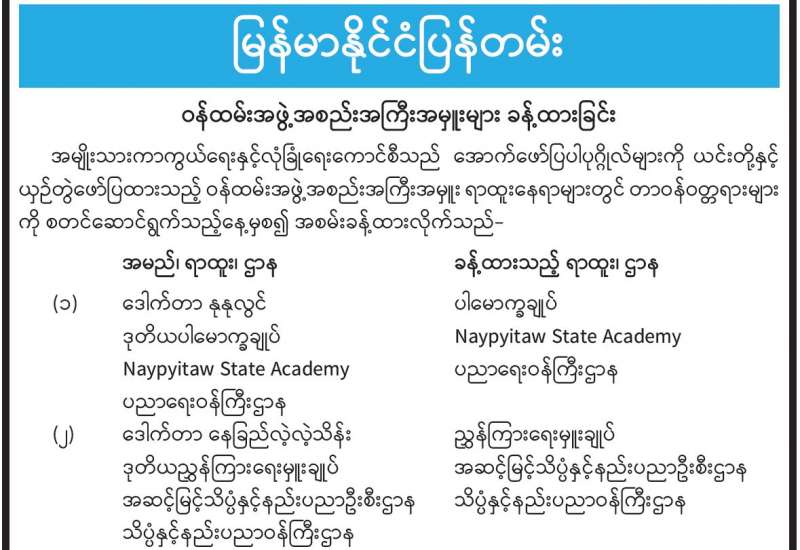 မြန်မာနိုင်ငံစာရင်းကောင်စီက ကြီးမှူးကျင်းပသည့် လက်မှတ်ရပြည်သူ့စာရင်းကိုင် (Certified Public Accountant – CPA) (ဒုတိယပိုင်း) သင်တန်းအမှတ်စဉ် (၄၈) သင်တန်းဖွင့်ပွဲကို ယနေ့နံနက်ပိုင်းတွင် နေပြည်တော်ရှိ ပြည်ထောင်စုစာရင်းစစ်ချုပ်ရုံး နဝရတ်ခန်းမ၌ Hybrid စနစ်ဖြင့် ကျင်းပသည်။