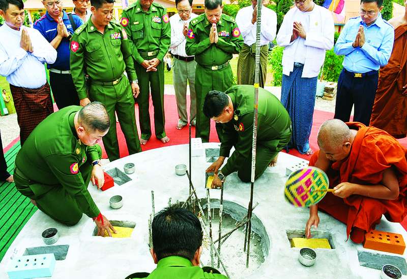 ရှမ်းပြည်နယ်(တောင်ပိုင်း)ခိုလမ်မြို့ မဟာဗောဓိကျောင်းတိုက်အတွင်း၌ တည်ထားကိုးကွယ်မည့် “မဟာဗောဓိအောင်တော်မူ” စေတီတော်မြတ်ကြီး၏ ရတနာအုတ်မြစ်တော်စီမင်္ဂလာကို ယနေ့နံနက်ပိုင်းတွင် အဆိုပါကျောင်းတိုက်၌ ကျင်းပပြုလုပ်ရာ အရှေ့အလယ်ပိုင်းတိုင်းစစ်ဌာနချုပ် ဒုတိယတိုင်းမှူး ဗိုလ်မှူးချုပ် အောင်ကိုဝင်းနှင့် တာဝန်ရှိသူများ၊ ဌာနဆိုင်ရာ တာဝန်ရှိသူများနှင့် စေတနာရှင် အလှူရှင်များ တက်ရောက်ကြသည်။