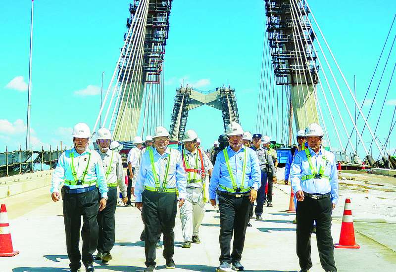 ဆောက်လုပ်ရေးဝန်ကြီးဌာန ဒုတိယဝန်ကြီး ဦးမျိုးမြင့်သည် မွန်ပြည်နယ် လမ်းပန်းဆက်သွယ်ရေးဝန်ကြီး ဦးတင်စန်းနိုင်နှင့်အတူ ယမန်နေ့က မွန်ပြည်နယ်အတွင်း တည်ဆောက်လျက်ရှိသည့် တံတားလုပ်ငန်းများ ကြည့်ရှုစစ်ဆေးသည်။