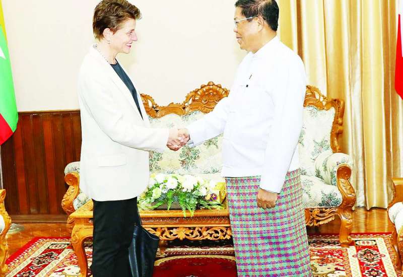 နိုင်ငံခြားရေးဝန်ကြီးဌာန ပြည်ထောင်စုဝန်ကြီးဦးသန်းဆွေသည် မြန်မာနိုင်ငံဆိုင်ရာ ကုလသမဂ္ဂယာယီဌာနေ ညှိနှိုင်းရေးမှူးနှင့် လူသားချင်းစာနာထောက်ထားမှုဆိုင်ရာ ယာယီညှိနှိုင်းရေးမှူးဖြစ်သူ Ms.Gwyn Lewis အား ယနေ့နံနက် ၁၀ နာရီတွင် နေပြည်တော်ရှိ နိုင်ငံခြားရေးဝန်ကြီးဌာန၌ လက်ခံတွေ့ဆုံသည်။