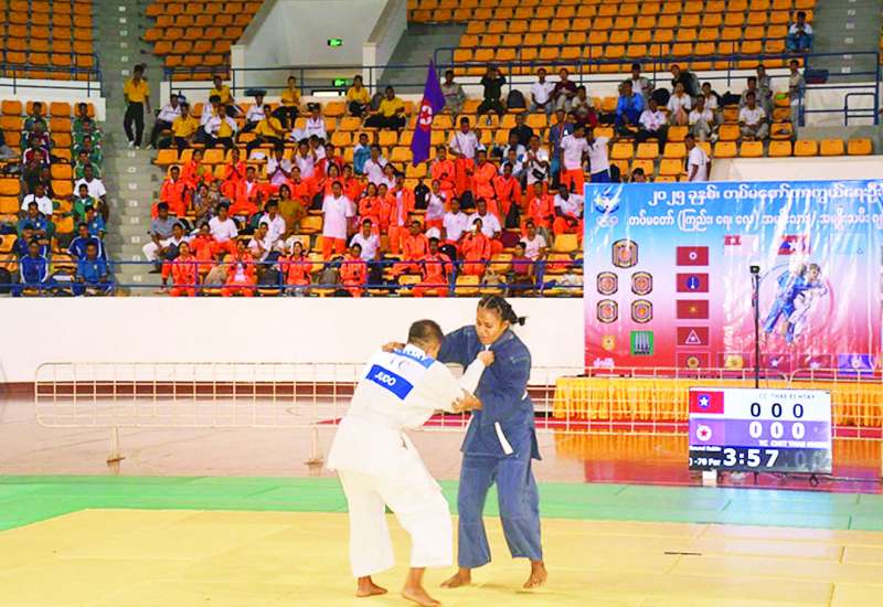 ၂၀၂၅ ခုနှစ် တပ်မတော်ကာကွယ်ရေးဦးစီးချုပ်ဒိုင်း တပ်မတော် (ကြည်း၊ ရေ၊ လေ)  အမျိုးသား အမျိုးသမီး    ဂျူဒိုပြိုင်ပွဲဖွင့်ပွဲကို ယနေ့မွန်းလွဲပိုင်းတွင် ရန်ကုန်တိုင်းဒေသကြီး သင်္ဃန်းကျွန်းမြို့နယ်ရှိ အမျိုးသားအားကစားပြိုင်ပွဲရုံ(၁)သုဝဏ္ဏ၌ပြုလုပ်ရာ တပ်မတော်ကာကွယ်ရေးဦးစီးချုပ် ကိုယ်စား ရန်ကုန်တိုင်းစစ်ဌာနချုပ် တိုင်းမှူး ဗိုလ်ချုပ် ပြည့်စုံလင်းနှင့် တာဝန်ရှိသူများ၊ အရာရှိ၊ စစ်သည်၊ မိသားစုများ၊ ဒိုင်အဖွဲ့ဝင်များနှင့် ပြိုင်ပွဲဝင်အားကစားသမားများ တက်ရောက် ကြသည်။