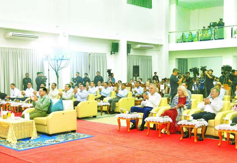 မြန်မာ-ရုရှား-ဘယ်လာရုစ် (၃) နိုင်ငံပူးပေါင်းဖျော်ဖြေတင်ဆက်မှုအခမ်းအနားအား ယနေ့ညနေပိုင်းတွင် နေပြည်တော်ရှိ Naypyitaw State Polytechnic University ၌ကျင်းပရာ ပြည်ထောင်စုသမ္မတမြန်မာနိုင်ငံတော်ယာယီသမ္မတ နိုင်ငံတော်လုံခြုံရေးနှင့် အေးချမ်းသာယာရေးကော်မရှင်ဥက္ကဋ္ဌ ဗိုလ်ချုပ်မှူးကြီးမင်းအောင်လှိုင် တက်ရောက်ချီးမြှင့်သည်။