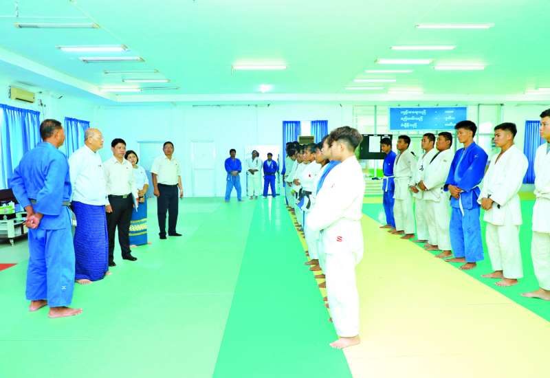 မြန်မာနိုင်ငံအိုလံပစ်ကော်မတီဥက္ကဋ္ဌ အားကစားနှင့်လူငယ်ရေးရာဝန်ကြီးဌာနနှင့် ဟိုတယ်နှင့်ခရီးသွားလာရေးဝန်ကြီးဌာန ပြည်ထောင်စုဝန်ကြီး Jeng Phang နော်တောင်သည် တာဝန်ရှိသူများနှင့်အတူ ယနေ့နံနက်ပိုင်းတွင် ဝဏ္ဏသိဒ္ဓိအားကစားကွင်းရှိ လက်ဝှေ့လေ့ကျင့်ရေးရုံ၌ (၃၃)ကြိမ်မြောက် အရှေ့တောင်အာရှအားကစားပြိုင်ပွဲတွင် ဝိတ်တန်းများအလိုက် အင်အားပြည့်ဝင်ရောက်ယှဉ်ပြိုင်နိုင်ရန်အတွက် ဂျူဒိုနှင့် လက်ဝှေ့အားကစားအဖွဲ့များ အရှိန်အဟုန်မပြတ် ကြိုးစားလေ့ကျင့်ပြင်ဆင်နေမှုကို ကြည့်ရှုအားပေးသည်။