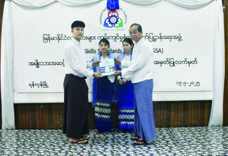 မြန်မာနိုင်ငံ လုပ်သားများကျွမ်းကျင်မှုစံသတ်မှတ်ပြဋ္ဌာန်းရေးအဖွဲ့(NSSA)၏ အမျိုးသားအဆင့် အလုပ်အကိုင်ဆိုင်ရာကျွမ်းကျင်မှု အသိအမှတ်ပြုလက်မှတ်ပေးအပ်ပွဲကို စက်တင်ဘာ ၁၉ ရက်က ရန်ကုန်တိုင်းဒေသကြီး ကျွမ်းကျင်မှုလေ့ကျင့်ရေးသင်တန်းကျောင်း(ရန်ကင်း)၌ ကျင်းပရာ အလုပ်သမားဝန်ကြီးဌာန ဒုတိယဝန်ကြီး ဦးဝင်းရှိန်၊ ရန်ကုန်တိုင်းဒေသကြီး တိုင်းရင်းသားရေးရာဝန်ကြီး၊ ဌာနဆိုင်ရာတာဝန်ရှိသူများ၊ ကျွမ်းကျင်မှုစစ်ဆေးအကဲဖြတ်ရေးနှင့် အသိအမှတ်ပြုရေးကော်မတီ(ACC)နှင့် အလုပ်အကိုင်ဆိုင်ရာ ကျွမ်းကျင်မှုလေ့ကျင့်ရေးကော်မတီဝင်များ၊ ကျွမ်းကျင်မှုအသိအမှတ်ပြု လက်မှတ်ရယူမည့် ကျွမ်းကျင်လုပ်သားများ တက်ရောက်ကြသည်။