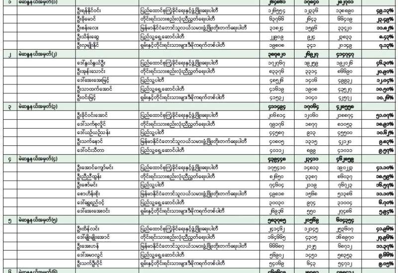 ၂၀၂၅ ခုနှစ် ပါတီစုံဒီမိုကရေစီအထွေထွေရွေးကောက်ပွဲ (အပိုင်း ၃) တိုင်းဒေသကြီးလွှတ်တော် သို့မဟုတ် ပြည်နယ်လွှတ်တော် ကိုယ်စားလှယ်လောင်းတစ်ဦးချင်း ဆန္ဒမဲရရှိမှုအခြေအနေ