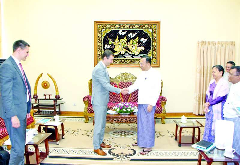 ဘဏ္ဍာရေးနှင့်အခွန်ဝန်ကြီးဌာန ပြည်ထောင်စုဝန်ကြီး ဒေါက်တာကံဇော်သည် PJSC “Sberbank of Russia” ကုမ္ပဏီ၏ ဒုတိယဥက္ကဋ္ဌ မစ္စတာအီဗန်နိုဆော့ဗ် ဦးဆောင်သော ကိုယ်စားလှယ်အဖွဲ့အား ယနေ့နံနက်ပိုင်းတွင် နေပြည်တော်ရှိ ပြည်တွင်းအခွန်များဦးစီးဌာန ရုံးအမှတ် (၄၆) ၌ လက်ခံတွေ့ဆုံသည်။
