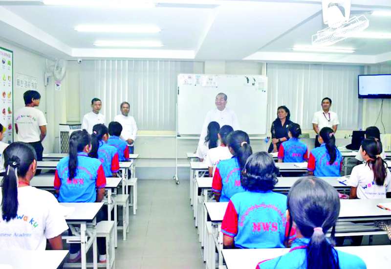 အလုပ်သမားဝန်ကြီးဌာန ဒုတိယဝန်ကြီး ဦးဝင်းရှိန်သည် ယနေ့နံနက်ပိုင်းတွင် ရန်ကုန်တိုင်းဒေသကြီးရှိ အလုပ်သမားရေးရာတာဝန်ရှိသူများနှင့်အတူ သင်္ဃန်းကျွန်းမြို့နယ်ရှိ Waku Waku Japanese Language Academy သို့ သွားရောက်၍ သက်ကြီးရွယ်အိုစောင့်ရှောက်ရေးသင်တန်းနှင့် ဂျပန်ဘာသာစကားသင်တန်းများ ဖွင့်လှစ်ပို့ချနေမှုကို ကြည့်ရှုအားပေးသည်။