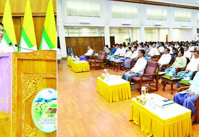 စိုက်ပျိုးရေး၊ မွေးမြူရေးနှင့်ဆည်မြောင်းဝန်ကြီးဌာန အဂတိလိုက်စားမှုတိုက်ဖျက်ရေးဆိုင်ရာ အသိပညာပေးရှင်းလင်းဆွေးနွေးခြင်းကို ယနေ့နံနက်ပိုင်းတွင် နေပြည်တော်ရုံးအမှတ် (၁၅) စုဝေးဆောင်ခန်းမ၌ ကျင်းပရာ ပြည်ထောင်စုဝန်ကြီး ဦးမင်းနောင်၊ အဂတိလိုက်စားမှုတိုက်ဖျက်ရေးကော်မရှင်ဥက္ကဋ္ဌ ဦးလွင်ဦးနှင့် ကော်မရှင်အဖွဲ့ဝင်များ၊ ဒုတိယဝန်ကြီးများ၊ အမြဲတမ်းအတွင်းဝန်နှင့် ဝန်ကြီးဌာနအောက်ရှိ ဦးစီးဌာနများ၊ တက္ကသိုလ်များမှ အရာထမ်း၊ အမှုထမ်းများ တက်ရောက်ကြသည်။
