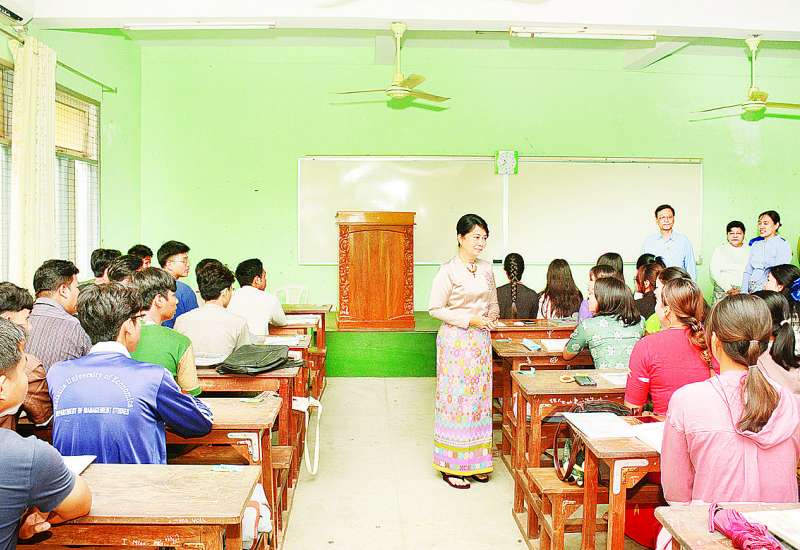 ပညာရေးဝန်ကြီးဌာန ပြည်ထောင်စုဝန်ကြီး ဒေါက်တာ ချောချောစိန်သည် ဒုတိယဝန်ကြီး ဒေါက်တာဇော်မြင့်၊ ညွှန်ကြားရေးမှူးချုပ်များ၊ ဒုတိယညွှန်ကြားရေးမှူးချုပ်များနှင့်အတူ ယနေ့နံနက်ပိုင်းတွင် မိတ္ထီလာစီးပွားရေးတက္ကသိုလ်သို့ ရောက်ရှိကာ ငလျင်ဒဏ်ကြောင့် ထိခိုက်ပျက်စီးမှုများဖြစ်ပေါ်ခဲ့သည့် မိတ္ထီလာစီးပွားရေးတက္ကသိုလ်ဘွဲ့နှင်းသဘင်ခန်းမကို ကြည့်ရှုစစ်ဆေးပြီး တာဝန်ရှိသူများ၏ တင်ပြချက်များနှင့် စပ်လျဉ်း၍ လိုအပ်သည်များကို မှာကြားသည်။