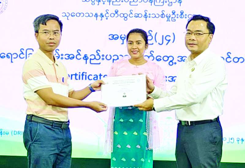 ရန်ကုန်မြို့ရှိ သုတေသနနှင့် တီထွင်ဆန်းသစ်မှု ဦးစီးဌာနက ဖွင့်လှစ်ပို့ချသည့် အမှတ်စဉ် (၂၄) နေရောင်ခြည်စွမ်းအင်နည်းပညာ လက်တွေ့အသုံးချသင်တန်း သင်တန်းဆင်းလက်မှတ်ပေးအပ်ပွဲအခမ်းအနားကို ယမန်နေ့က အဆိုပါဦးစီးဌာန၌ကျင်းပရာ သိပ္ပံနှင့်နည်းပညာ ဝန်ကြီးဌာန ဒုတိယဝန်ကြီး ဒေါက်တာအောင်ဇေယျ၊ သုတေသနနှင့် တီထွင်ဆန်းသစ်မှုဦးစီးဌာန ညွှန်ကြားရေးမှူးချုပ်နှင့် တာဝန်ရှိသူများ၊ သင်တန်းဆရာ ဆရာမ များနှင့် သင်တန်းသား သင်တန်းသူများ တက်ရောက်ကြသည်။