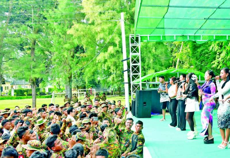 ကယားပြည်နယ် လွိုင်ကော်တပ်နယ်ရှိ တပ်မတော်သားများနှင့် မြန်မာနိုင်ငံရဲတပ်ဖွဲ့ဝင်များအား အနုပညာရှင်များ၏ ဂုဏ်ပြုဖျော်ဖြေတင်ဆက်မှုကို ယနေ့နံနက်ပိုင်းကပြုလုပ်ရာ ပြန်ကြားရေးဝန်ကြီးဌာန ပြည်ထောင်စုဝန်ကြီး ဦးမောင်မောင်အုန်း၊ ပြည်နယ်ဝန်ကြီးချုပ် ဦးဇော်မျိုးတင်တို့ တက်ရောက်ကြည့်ရှုအားပေးပြီး တပ်ဖွဲ့ဝင်များအား ဆုငွေများပေးအပ်ချီးမြှင့်သည်။