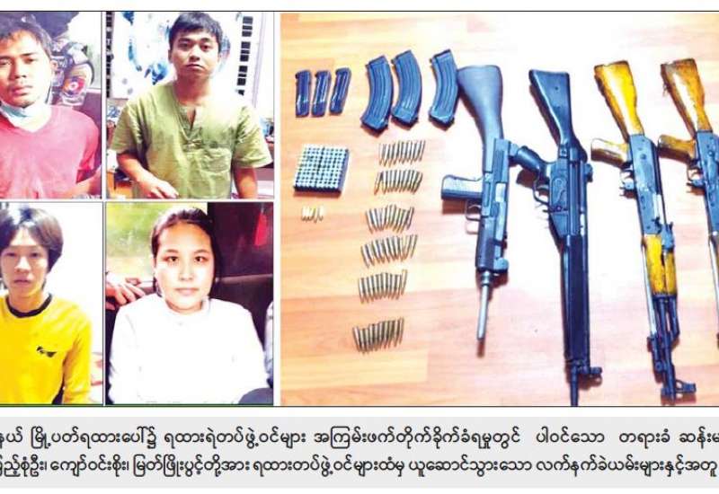 ၂ဝ၂၁ ခုနှစ်၊ ဩဂုတ်လ ၁၄ ရက်တွင် ရန်ကုန် - အင်းစိန် မြိုပတ်ရထားပေါ်၌ အကြမ်းဖက် လက်နက်ကိုင်များ အငိုက်ဖမ်းပစ်ခတ်မှုကြောင့် လုံခြုံရေးတပ်ဖွဲဝင် ၄ ဦး ကျဆုံးကာ လက်နက်ခဲယမ်းအချို ဆုံးရှုးခဲ့မှုဖြစ်စဉ်နှင့် ပတ်သက်၍ ပြန်လည်ဖမ်းဆီး နှိမ်နင်းနိုင်ရေး ထိထိရောက်ရောက်ဆောင်ရွက်ခဲ့ရာ သတင်းဖော်ထုတ်ချက်အရ လုံခြုံရေးတပ်ဖွဲဝင်များသည်