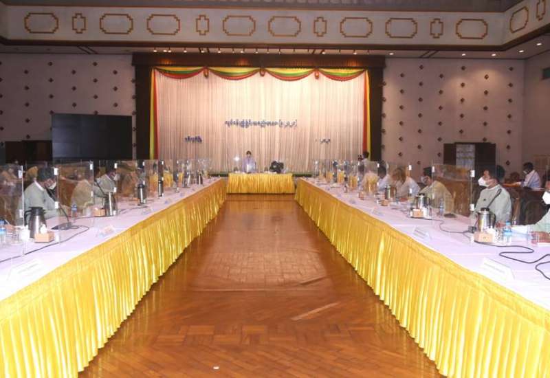 ရန်ကုန်တိုင်းဒေသကြီးအတွင်းရှိ စက်ရုံ၊ အလုပ်ရုံများမှ အလုပ်သမားများအား ကိုဗစ်-၁၉ ရောဂါ ကာကွယ်ဆေး ထိုးနှံနိုင်မှု အခြေအနေ လုပ်ငန်းညှိနှိုင်း အစည်းအဝေးကို ယနေ့ နံနက်ပိုင်းတွင် ရန်ကုန်တိုင်းဒေသကြီးအစိုးရအဖွဲ့ရုံး မင်္ဂလာခန်းမ၌ပြုလုပ်ရာ ရန်ကုန်တိုင်းဒေသကြီး ဝန်ကြီးချုပ် ဦးလှစိုး၊ ရန်ကုန်တိုင်းစစ်ဌာနချုပ် တိုင်းမှူး ဗိုလ်ချုပ် ညွန့်ဝင်းဆွေနှင့် ဌာနဆိုင်ရာ တာဝန်ရှိသူများတက်ရောက် ကြသည်။