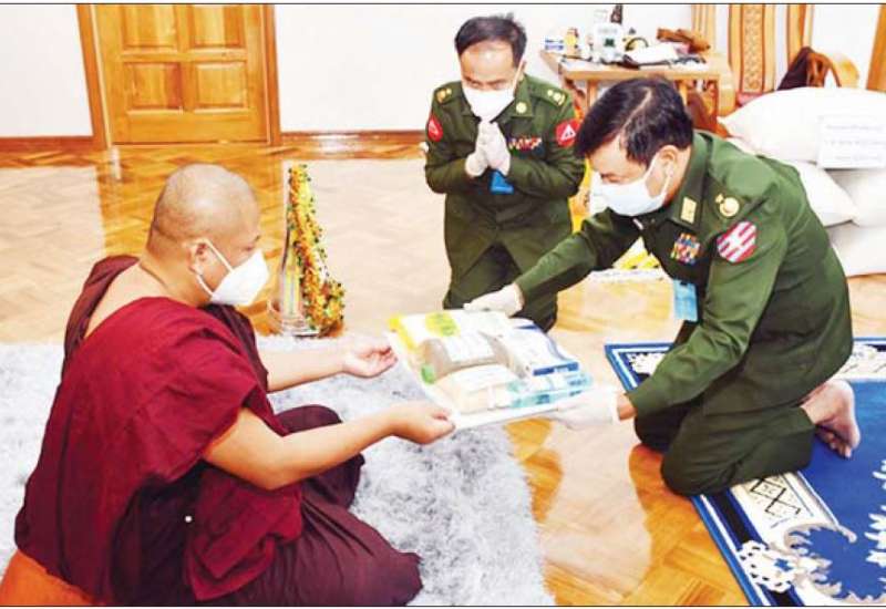 တပ်မတော်(ကြည်း၊ရေ၊လေ) အရာရှိ၊ စစ်သည်၊ အရာထမ်း၊ အမှုထမ်းများနှင့် စေတနာရှင် အလှူရှင်များက ကိုဗစ်-၁၉ ရောဂါ ကြိုတင် ကာကွယ်ရေး လုပ်ငန်းများ ဆောင်ရွက်နေသည့် ကာလအတွင်း ဆွမ်းကိစ္စရပ်များ အဆင်ပြေစေရန် ရည်ရွယ်၍ မြို့နယ်အသီးသီးရှိ ဘုန်းတော်ကြီး ကျောင်းများ၊ သာသနာ့နွယ်ဝင် သီလရှင်ကျောင်းများနှင့် ဘာသာရေးကျောင်းများတွင် ဆွမ်းဆန်တော်၊ ဆီ၊ ဆား၊ ပဲ အမယ်(၄)မျိုးနှင့် လှူဖွယ်ပစ္စည်းများလှူဒါန်းခြင်း၊ နေ့ဆွမ်းများ ဆက်ကပ်လှူဒါန်းခြင်းနှင့် ကျန်းမာရေး စစ်ဆေးပေးခြင်းများကို ဆောင်ရွက်လျက်ရှိသည်။