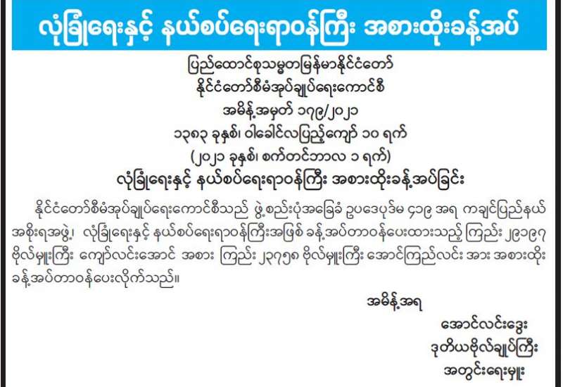 အကောက်ခွန်ဦးစီးဌာနအနေဖြင့် ကိုဗစ်-၁၉ ရောဂါ ကာကွယ်၊ ထိန်းချုပ်၊ ကုသရေးပစ္စည်းများအား လေကြောင်း၊ ဆိပ်ကမ်း၊ နယ်စပ်ဂိတ်အသီးသီးမှ ရုံးပိတ်ရက်ရှည်ကာလအတွင်း နေ့စဉ် ရုံးပိတ်ရက်မရှိ လွယ်ကူချောမွေ့စွာ စစ်ဆေးထုတ်ပေးလျက်ရှိသည်။