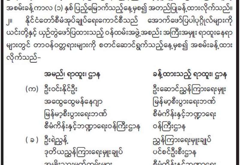 ၁။ COVID-19 ကပ်ရောဂါ ကူးစက်ပြန့်ပွားမှုကို ကာကွယ်ထိန်းချုပ်သည့် အစီအမံများအား ပိုမိုထိရောက်စွာ ဆောင်ရွက်နိုင်ရန်ရှေးရှုလျက် ပြည်ထောင်စုသမ္မတမြန်မာနိုင်ငံတော်၊ နိုင်ငံခြားရေး ဝန်ကြီးဌာနအနေဖြင့် ကမ္ဘာ့နိုင်ငံအသီးသီးမှ မြန်မာနိုင်ငံသို့ လာရောက်ကြမည့် ခရီးသွားများ အပေါ်ပြည်ဝင်ခွင့်ယာယီကန့်သတ်ချက်များအား ထုတ်ပြန်ထားခဲ့ပြီး၊ အဆိုပါကန့်သတ်ချက်များ အားလုံးကို ၃၁-၈-၂၀၂၁ ရက်နေ့အထိ ဆက်လက်တိုးမြှင့်သတ်မှတ်ကြောင်း ၃၀-၇-၂၀၂၁ ရက်စွဲပါကြေညာချက်ဖြင့် ထုတ်ပြန်ထားခဲ့ပြီးဖြစ်ပါသည်-