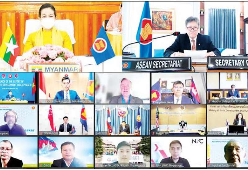 အာဆီယံလူငယ်ဆိုင်ရာ ဖွံ့ဖြိုးမှုအညွှန်းကိန်းများ အစီအစဉ် (၂) (ASEAN Youth Development Index Phase II) မိတ်ဆက်ဖြန့်ချိခြင်း အခမ်းအနားကို ယနေ့နံနက်ပိုင်းတွင် ဗီဒီယိုကွန်ဖရင့်စနစ်ဖြင့် ကျင်းပရာ လူမှုဝန်ထမ်း၊ ကယ်ဆယ်ရေးနှင့် ပြန်လည်နေရာချထားရေးဝန်ကြီးဌာန ပြည်ထောင်စု ဝန်ကြီး ဒေါက်တာသက်သက်ခိုင် တက်ရောက်သည်။