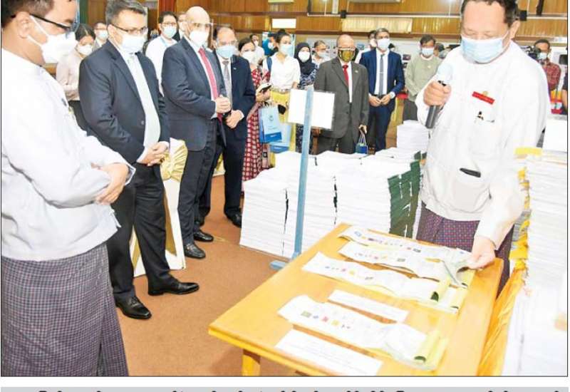 ပြန်ကြားရေးဝန်ကြီးဌာန ပြည်ထောင်စုဝန်ကြီး ဦးမောင်မောင်အုန်းသည် ယနေ့နံနက်ပိုင်းတွင် ရန်ကုန်မြို့ ဗဟန်းမြို့နယ် ငါးထပ်ကြီးဘုရားလမ်းရှိ ဖိုတိုလစ်သို ပုံနှိပ်စက်ရုံသို့ ရောက်ရှိပြီး လုပ်ငန်းဆောင်ရွက်နေမှု အခြေအနေများကို လှည့်လည် ကြည့်ရှုစစ်ဆေးသည်။