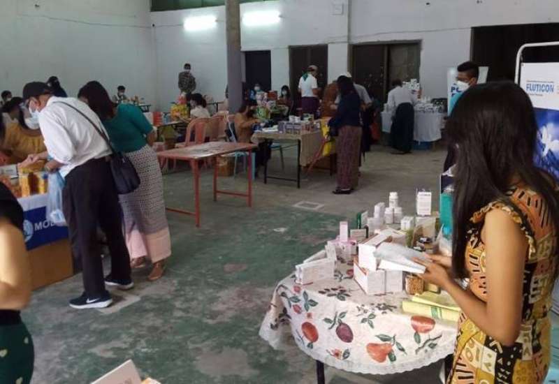 ကိုဗစ်-၁၉ ရောဂါ တတိယလှိုင်းဖြစ်ပွားနေသည့်ကာလအတွင်း ရန်ကုန်တိုင်းဒေ သကြီးအတွင်းရှိ ပြည်သူများ၏ ဆေးဝါးလိုအပ်ချက်အား ဖြည့်ဆည်းပေးနိုင်ရေး၊ ဆေးဝါးများလွယ်လင့်တ ကူဝယ်ယူနိုင်ရေး အရည်အသွေးနှင့်ဈေးနှုန်းမှန်ကန်စွာရရှိစေ ရေးအတွက် ရန်ကုန်တိုင်းဒေသကြီးအစိုးရအဖွဲ့၏ ညွှန်ကြားချက်အရ မြန်မာနိုင်ငံ ဆေးနှင့် ဆေးပစ္စည်းလုပ်ငန်းရှင်များအသင်း၏စီစဉ်မှုဖြင့် ဒုတိယနေရာအဖြစ် ပန်းဘဲတန်းမြို့နယ်၊ ကုန်သည်လမ်းနှင့် ဗိုလ်ဆွန်ပက်လမ်းထောင့်ရှိ မြန်မာအပြည်ပြည် ဆိုင်ရာကုန် သွယ်မှုဗဟိုဌာန အဆောက်အအုံ၌ အိမ်သုံးဆေးဝါးများ လက်လီ လက်ကား ဖြန့်ဖြူး ရောင်းချခြင်းအစီအစဉ်ကို ဆောင်ရွက်ခဲ့ရာ ယနေ့တွင် ဆေးနှင့် ဆေးပစ္စည်း ဖြန့်ဖြူးရောင်းချသော ကုမ္ပဏီ ၁၆ ခုမှ အိမ်သုံးဆေးဝါး ၂၁၄ မျိုးကို ရောင်းချ ပေးလျက်ရှိပြီး ငွေကျပ် ၅၁ သိန်းကျော်တန်ဖိုးရှိ ဆေးနှင့်ဆေးပစ္စည်းများကို ရောင်းချ ခဲ့သည်။