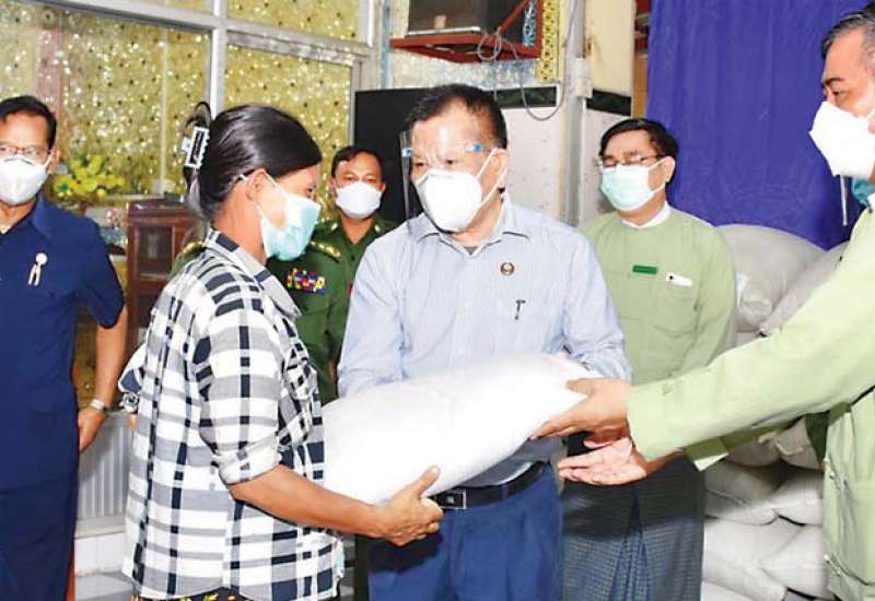 မန္တလေးတိုင်းဒေသကြီးဝန်ကြီးချုပ် ဦးမောင်ကိုနှင့် အလယ်ပိုင်းတိုင်းစစ်ဌာနချုပ် တိုင်းမှူး ဗိုလ်ချုပ်ကိုကိုဦးနှင့် တာဝန်ရှိသူများသည် မြို့နယ်များအတွင်းရှိ အခြေခံ အိမ်ထောင်စုဝင်များအတွက် အခြေခံစားသောက်ကုန် ဆန်များကို ယနေ့နံနက်ပိုင်းက အောင်မြေသာစံမြို့နယ်ရှိ ၁၂ လမ်းနှင့် ၇၇ လမ်းထောင့်၊ ဓမ္မနိဗဒ္ဓထားဝယ် ဓမ္မာရုံကြီးနှင့် ၈၆ လမ်း၊ ၁၃ လမ်းနှင့် ၁၄ လမ်းကြား၊ ကိုးခန်းဓမ္မာရုံ၌ ထောက်ပံ့ပေးအပ်သည်။
