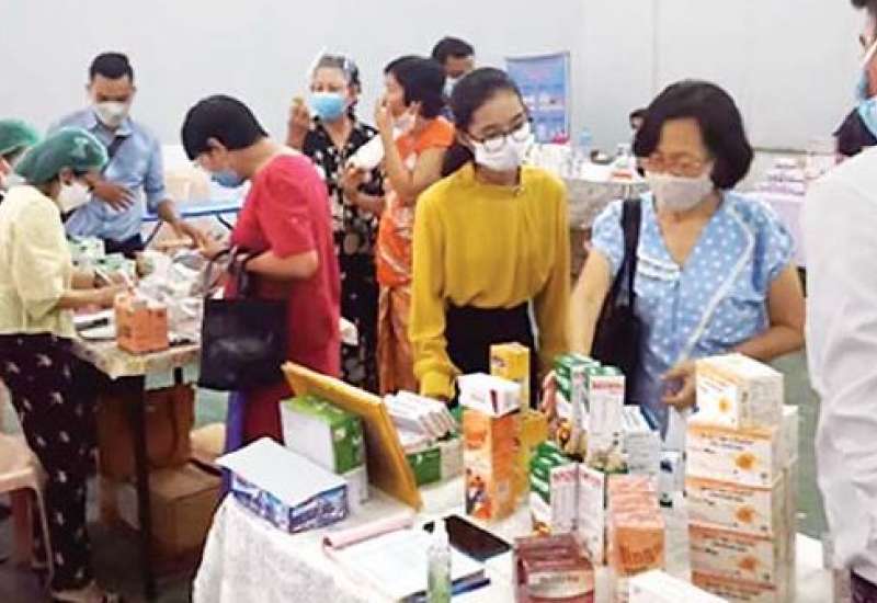ရန်ကုန်တိုင်းဒေသကြီးအစိုးရအဖွဲ့ ၏ လမ်းညွှန်မှုအရ မြန်မာနိုင်ငံ ဆေးနှင့် ဆေးပစ္စည်းလုပ်ငန်းရှင်များအသင်း၏ စီစဉ်မှုဖြင့် ပန်းဘဲတန်းမြို့နယ် ကုန်သည်လမ်းနှင့် ဗိုလ်ဆွန်ပက်လမ်းထောင့်ရှိမြန်မာ အပြည်ပြည်ဆိုင်ရာ ကုန်သွယ်မှ ဗဟိုဌာနအဆောက်အအုံ၌ ဒုတိယ အစီအစဉ်အဖြစ် အိမ်သုံးဆေးဝါး များ လက်လီလက်ကား ဖြန့်ဖြူး ရောင်းချခြင်း အစီအစဉ်ကို ယနေ့တွင် ဆောင်ရွက်ခဲ့ရာ ဆေးနှင့် ဆေးပစ္စည်း ဖြန့်ဖြူးရောင်းချ သောကုမ္ပဏီ ၂၀မှအိမ်သုံးဆေးဝါး ၁၇၉ မျိုးကို ရောင်းချပေးလျက် ရှိပြီး ငွေကျပ်သိန်း ၈၀ ကျော် တန်ဖိုးရှိ ဆေးနှင့်ဆေးပစ္စည်းများ ကို ရောင်းချခဲ့သည်။