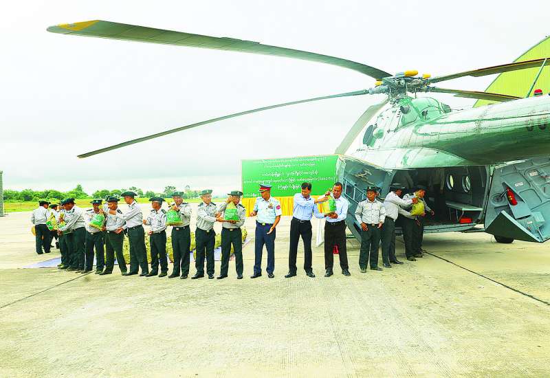 သယံဇာတနှင့်သဘာဝပတ်ဝန်းကျင်ထိန်းသိမ်းရေးဝန်ကြီးဌာနနှင့် ကာကွယ်ရေးဦးစီးချုပ်ရုံး(လေ)တို့၏ ပူးပေါင်းစီစဉ်မှုဖြင့် ပြည်ထောင်စုနယ်မြေ နေပြည်တော် ဥတ္တရခရိုင် တပ်ကုန်းမြို့နယ် ဆင်သေချောင်းရေဝေ ရေလဲဧရိယာအတွင်းရှိ လွှဘုံကြိုးဝိုင်းအတွင်းနှင့် ရှမ်းပြည်နယ်တောင်ကြီးခရိုင် ညောင်ရွှေမြို့နယ် အင်းလေကန်ရေဝေရေလဲ ဧရိယာအတွင်းရှိ အင်းလေးအနောက် ကြိုးပြင်ကာကွယ်တောတို့အတွင်းရှိ တောနိမ့်တောပါး၊ ကွက်လပ်ဖြစ်ပေါ်နေသော တောင်ကုန်းများတွင် တပ်မတော်ရဟတ်ယာဉ်ဖြင့် သစ်စေ့မြေလုံးများကြဲချခြင်းကို ယနေ့နံနက်ပိုင်းတွင် ဆောင်ရွက်ကြသည်။