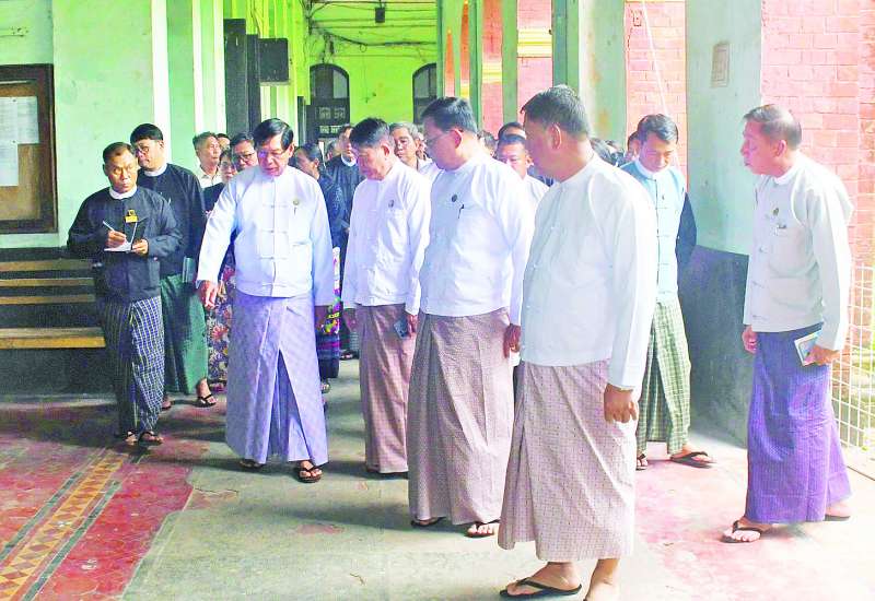 ပြည်ထောင်စုတရားသူကြီးချုပ် ဦးသာဌေးသည် ဆောက်လုပ်ရေးဝန်ကြီးဌာန ပြည်ထောင်စုဝန်ကြီး ဦးမျိုးသန့်၊ ရန်ကုန်တိုင်းဒေသကြီး ဝန်ကြီးချုပ်ဦးစိုးသိန်း၊ ရန်ကုန်မြို့တော်ဝန် ဦးဗိုလ်ဌေး၊ ရှေးဟောင်းသုတေသနနှင့် အမျိုးသားပြတိုက်ဦးစီးဌာန ညွှန်ကြားရေးမှူးချုပ် ဒေါက်တာကျော်ဦးလွင် တို့နှင့်အတူ ယနေ့မွန်းလွဲပိုင်းတွင် ရန်ကုန်တိုင်းဒေသကြီး ကျောက်တံတားမြို့နယ် ပန်းဆိုးတန်းလမ်းရှိ ရန်ကုန်တိုင်းဒေသကြီး တရားလွှတ်တော် ရှေးဟောင်းအဆောက်အအုံအား ရှေးမူမပျက် ပြန်လည်ပြုပြင်ထိန်းသိမ်းနိုင်ရန် ဆောင်ရွက်မည့်လုပ်ငန်းအခြေအနေတို့ကို ကွင်းဆင်းကြည့်ရှု စစ်ဆေးသည်။