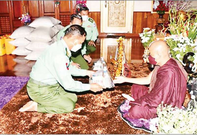 မြို့နယ်အသီးသီးရှိ ဘုန်းတော် ကြီးကျောင်းများ၊ သာသနာ့ နွယ်ဝင် သီလရှင်ကျောင်းများနှင့် ဘာသာရေး ကျောင်းများတွင် ဆွမ်းဆန်တော်၊ ဆီ၊ ဆား၊ ပဲ အမယ်လေးမျိုးနှင့် လှူဖွယ်ပစ္စည်း | များ လှူဒါန်းခြင်း၊ နေ့ဆွမ်းများ ဆက်ကပ်လှူဒါန်းခြင်းနှင့် ကျန်းမာရေးစစ်ဆေးပေးခြင်း များကို ဆောင်ရွက်လျက်ရှိရာ ယနေ့တွင် မွန်ပြည်နယ် ရေးမြို့နယ် ပုပ္ပဝတီကျေးရွာရှိ ပုပ္ပရာမကျောင်း တိုက်၊ အစင်စံပြကျေးရွာရှိ သာသနာ့ဇောတိကကျောင်းတိုက်နှင့် ထန်းခြောက်ပင်ကျောင်း တိုက်များသို့ ကာကွယ်ရေးဦးစီးချုပ်ရုံး(ကြည်း)မှ ဒုတိယဗိုလ်ချုပ်ကြီး အောင်စိုး၊ အရှေ့တောင် တိုင်း စစ်ဌာနချုပ် တိုင်းမှူး ဗိုလ်ချုပ် ကိုကိုမောင်နှင့် အဖွဲ့ဝင်များက သွားရောက်၍ သံဃာတော်များအား ဆွမ်းဆန်တော်၊ ဆန်၊ ဆီ၊ လှူဖွယ်ပစ္စည်းများနှင့် ကိုဗစ်-၁၉ရောဂါကြိုတင် ကာကွယ်ရေး အထောက်အကူပြု ဆေးဝါးများကို ဆက်ကပ်လှူဒါန်းကြ သည်။