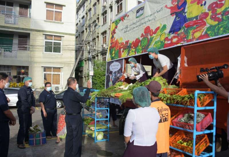 ရန်ကုန်တိုင်းဒေသကြီး စည်ပင်သာယာရေးဝန်ကြီး၊ ရန်ကုန်မြို့တော်စည်ပင်သာယာရေး ကော်မတီ၊ ဥက္ကဋ္ဌ(မြို့တော်ဝန်) ဦးဗိုလ်ဌေးသည် ယနေ့နံနက် ၇ နာရီတွင် ရန်ကင်းမြို့နယ်၊ (၈)ရပ်ကွက်၊ နှင်းဆီလမ်းရှိ ကံဘဲ့စည်ပင်အိမ်ရာဝင်း၌ ရွေ့လျားဈေးကား (Mobile Market) စနစ်ဖြင့် ကုန်စိမ်းများ၊ မီးဖိုချောင်သုံး ကုန်ခြောက်မျိုးစုံ၊ အသားမျိုးစုံနှင့် ငါး/ပုဇွန်အမျိုးမျိုးတို့ကို ဝန်ထမ်းမိသားစုများ ဈေးနှုန်းသက်သာစွာ စားသုံးနိုင်စေရန်၊ ကျန်းမာရေးဝန်ကြီးဌာနမှ ထုတ်ပြန်ထားသော ကိုဗစ်-၁၉ ရောဂါ ထိန်းချုပ်ရေး ညွှန်ကြားချက်များအား လိုက်နာ ဆောင်ရွက်နိုင်ရန် လိုက်လံကြည့်ရှုကြပ်မတ် စစ်ဆေးသည်။