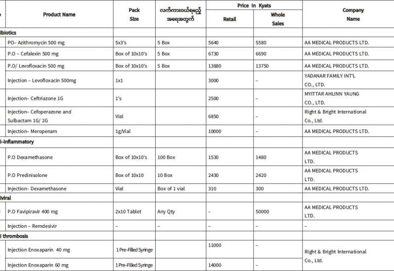 မြန်မာနိုင်ငံ ဆေးနှင့် ဆေးပစ္စည်း လုပ်ငန်းရှင်များအသင်းသည် ကိုဗစ်- ၁၉ ရောဂါ ကာကွယ်၊ ကုသရေးဆိုင်ရာ ဆေးဝါး၊ ဆေးပစ္စည်းမျိုးစုံတို့ကို အများပြည်သူများ ဈေးနှုန်းချိုသာစွာဖြင့် တင်သွင်းသူများထံမှ တိုက်ရိုက်ဝယ်ယူရရှိနိုင်စေရန်အတွက်လည်းကောင်း၊ အရည်အသွေး စစ်မှန်၍ ယုံကြည်စိတ်ချရသော မှတ်ပုံတင်ရှိ ဆေးဝါး၊ ဆေးပစ္စည်းများကို တင်သွင်းသည့်