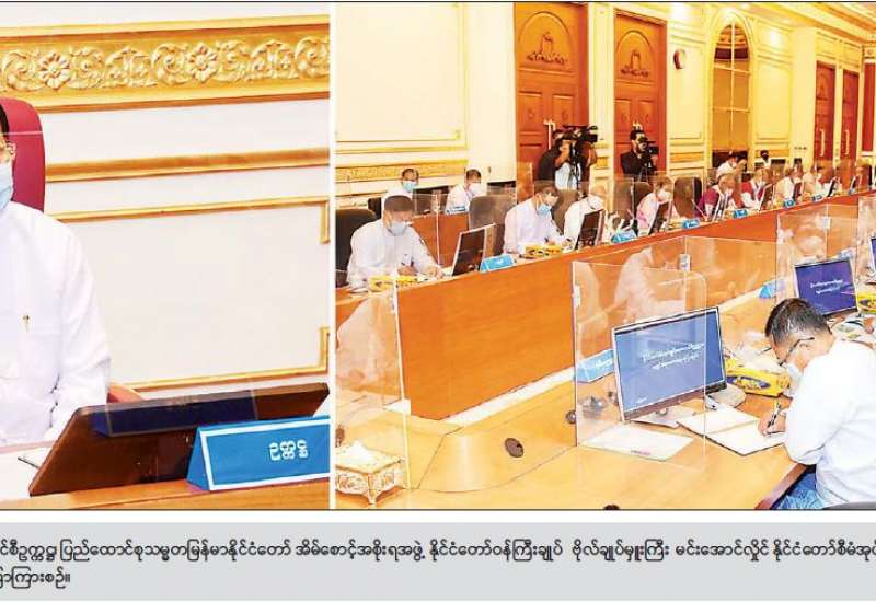 ကိုဗစ် - ၁၉ ရောဂါ ကာကွယ်၊ ထိန်းချုပ်၊ ကုသရေးဆိုင်ရာ (၉)ကြိမ်မြောက် ညှိနှိုင်း အစည်း အဝေးကို ယနေ့နံနက် ၁၀ နာရီတွင် နေပြည်တော်ရှိ ဘုရင့်နောင် ရိပ်သာ အစည်းအဝေး ခန်းမ၌ ကျင်းပပြုလုပ်လျက်ရှိပြီး နိုင်ငံတော်စီမံအုပ်ချုပ်ရေး ကောင်စီဥက္ကဋ္ဌ၊ ပြည်ထောင်စု သမ္မတမြန်မာနိုင်ငံတော် အိမ်စောင့်အစိုးရအဖွဲ့၊ နိုင်ငံတော်ဝန်ကြီးချုပ် ဗိုလ်ချုပ်မှူးကြီး မင်းအောင်လှိုင် တက်ရောက် အမှာစကား ပြောကြားသည်။