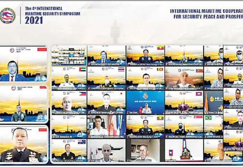 အင်ဒိုနီးရှားနိုင်ငံက အိမ်ရှင်အဖြစ် လက်ခံကျင်းပသည့် (၄) ကြိမ်မြောက် အပြည်ပြည်ဆိုင်ရာ ရေကြောင်းလုံခြုံရေး နှီးနှောဖလှယ်ပွဲ 4th International Maritime Security Symposium (2021) အခမ်းအနားကို “လုံခြုံမှု၊ ငြိမ်းချမ်းမှုနှင့် ကြွယ်ဝချမ်းသာမှုအတွက် အပြည်ပြည်ဆိုင်ရာ ရေကြောင်းလုံခြုံရေး ပူးပေါင်း ဆောင်ရွက်မှု” ခေါင်းစဉ်ဖြင့် ယနေ့တွင် Hybrid Symposium (Online and Offline) စနစ်ဖြင့် ကျင်းပခဲ့ရာ ကာကွယ်ရေးဦးစီးချုပ်(ရေ) ဗိုလ်ချုပ်ကြီး မိုးအောင် ဦးဆောင်သော တပ်မတော်(ရေ)မှ ကိုယ်စားလှယ် အရာရှိကြီးများ၊ အင်ဒိုနီးရှားနိုင်ငံ ဆိုင်ရာ မြန်မာစစ်သံမှူး(ကြည်း၊ ရေ၊ လေ)တို့ တက်ရောက်ကြသည်။