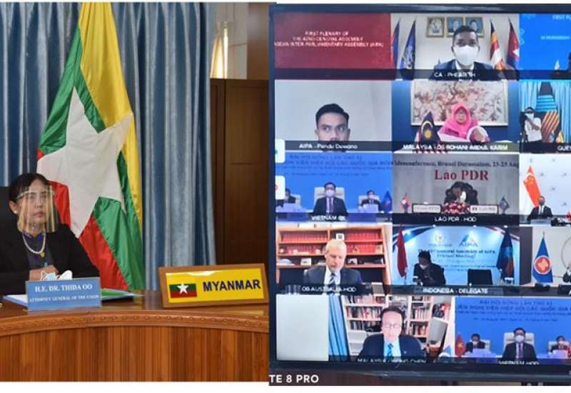 (၄၂) ကြိမ်မြောက် အာဆီယံပါလီမန်များ အထွေထွေညီလာခံ (42nd General Assembly of ASEAN Inter-Parliamentary Assembly)ကို ဘရူနိုင်းနိုင်ငံ အပြည်ပြည်ဆိုင်ရာ ကွန်ဗင်းရှင်းဗဟိုဌာန၌ ယနေ့ နံနက် ၈ နာရီခွဲက Virtual စနစ်ဖြင့်ကျင်းပရာ ပြည်ထောင်စုရှေ့နေချုပ် ဒေါက်တာသီတာဦးနှင့် မြန်မာကိုယ်စားလှယ်အဖွဲ့သည် ပြည်ထောင်စုရှေ့နေချုပ်ရုံး အစည်းအဝေးခန်းမမှ ပါဝင်တက်ရောက်ခဲ့ကြသည်။