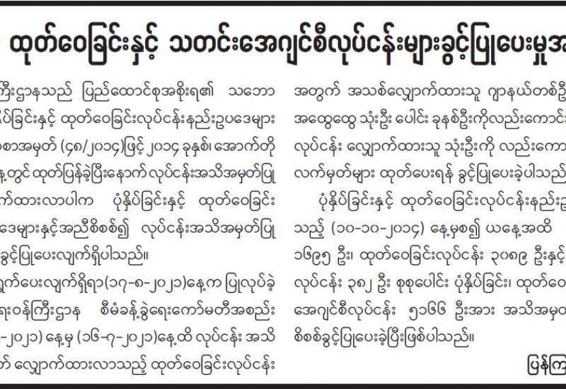 စီးပွားရေးနှင့် ကူးသန်းရောင်းဝယ်ရေး ဝန်ကြီးဌာနအနေဖြင့် ကိုဗစ်-၁၉ ကာကွယ်၊ ထိန်းချုပ်၊ ကုသရေးဆိုင်ရာ ပစ္စည်းများကို ပြည်ပမှ တင်သွင်းရာတွင် နှောင့်နှေးကြန့်ကြာမှုမရှိစေရေး အတွက် အများပြည်သူရုံးပိတ်ရက် များတွင်လည်း ပိတ်ရက်မရှိ စီစဉ်ဆောင်ရွက်ပေးလျက်ရှိရာ ယနေ့တွင် ရန်ကုန်အပြည်ပြည် ဆိုင်ရာလေဆိပ်မှ Oxygen Concentrator၆၀၆ ခု၊ PPE ဝတ်စုံ ၅၀၀ နှင့် ဆိပ်ကမ်းများမှ အောက်ဆီဂျင် (အရည်)အိုး ၁၂ တန်၊ အောက်ဆီဂျင်(အိုးခွံ) ၁၄၄၀ ၊ Oxygen(အရည်) Storage Container/ Tank တစ်ခုOxygen Generator တစ်လုံး အပါအဝင် မူဆယ်၊ ချင်းရွှေဟော်၊ မြဝတီ၊ ထီးခီ၊ ကန်ပိုက်တီး