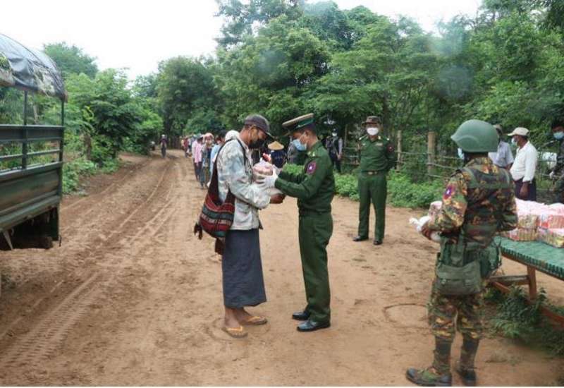 ကိုဗစ်- ၁၉ ရောဂါ ကာကွယ်၊ ထိန်းချုပ်၊ ကုသရေးလုပ်ငန်းများကို အရှိန်အဟုန်မြှင့် ဆောင်ရွက်လျက် ရှိရာ သွားလာမှုကန့်သတ်ချက်များကြောင့် စစ်မှုထမ်းဟောင်းအဖွဲ့ဝင်များ၊ မြန်မာနိုင်ငံရဲတပ်ဖွဲ့ဝင်များ၊ ပြည်သူ့စစ်(ဌာနေ)တပ်ဖွဲ့ဝင်များ၊ ကျန်းမာရေးဝန်ထမ်းများ၊ စေတနာ့ဝန်ထမ်း Volunteer များနှင့် ဒေသခံပြည်သူများ စားရေးအဆင်ပြေစေရေးအတွက် တပ်မတော်နှင့် စေတနာရှင်အလှူရှင်များက စားသောက်ဖွယ်ရာများနှင့် ရောဂါ ကာကွယ်ရေး အထောက်အကူပြုပစ္စည်းများကို ထောက်ပံ့လှူဒါန်းလျက် ရှိသည်။