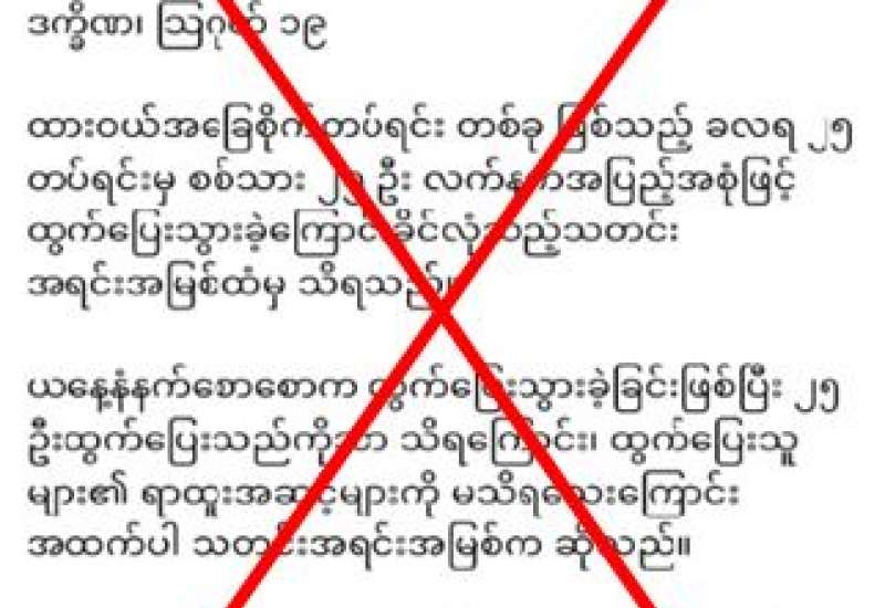သရက်မြို့စစ်လက်နက်စက်ရုံမှ စစ်သား ၁၅ ဦး လက်နက်များဖြင့်ထွက်ပြေးဆိုသည့် ဖြစ်စဉ် နှင့်ပတ်သက်၍ တပ်မတော်သတင်းမှန်ပြန်ကြားရေးအဖွဲ့မှ တာဝန်ရှိသူတစ်ဦးအား မေးမြန်းခဲ့ရာ “သရက်မြို့ရှိ ကာကွယ်ရေးပစ္စည်းစက်ရုံက တပ်မတော်သား ၁၅ ဦး လက်နက်များဖြင့် ထွက်ပြေးသွားတယ်ဆိုပြီးတော့ Mizzima သတင်းဌာနကနေ ဖော်ပြထားတာကို တွေ့ရပါတယ် ၊ ဒါ့အပြင် ထားဝယ်မြို့တွင် တပ်မတော်သား ၂၅ ဦး လက်နက် အပြည့်အစုံဖြင့် ထွက်ပြေး တယ်ဆိုပြီး Khit Thit Media ကလည်း ဖော်ပြနေပါတယ်။ အဲဒီသတင်းတွေက သတင်း အမှားပဲဖြစ်ပါတယ်။ လုံးဝမရှိပါဘူး။ အကြမ်းဖက်သမားတွေ ဖမ်းဆီး ထိန်းသိမ်းခံရမှုများနေပြီး ထွက်ပြေးတိမ်းရှောင်နေရတာတွေ များပြားနေတဲ့အတွက် အကြမ်းဖက်သမားတွေ စိတ်ဓါတ် ပြန်တက်ကြွလာအောင် ဝါဒဖြန့်ထုတ်ပြန်ပေးနေတဲ့ သတင်း တွေဖြစ်ပါတယ်။ အဲလိုသတင်းမျိုး တွေကို ဒီသတင်းဌာနတွေကနေ မကြာခဏဆိုသလို မဟုတ်မမှန် ရေးသားဖော်ပြနေကြတာ ဖြစ်ပါတယ်။ ပြည်သူများအနေနဲ့ ဒီသတင်းဌာနတွေရဲ့ သတင်းကို မယုံကြဖို့ သတင်းပေး လိုပါတယ်” ဟု ပြန်လည်ဖြေကြားခဲ့သည်။