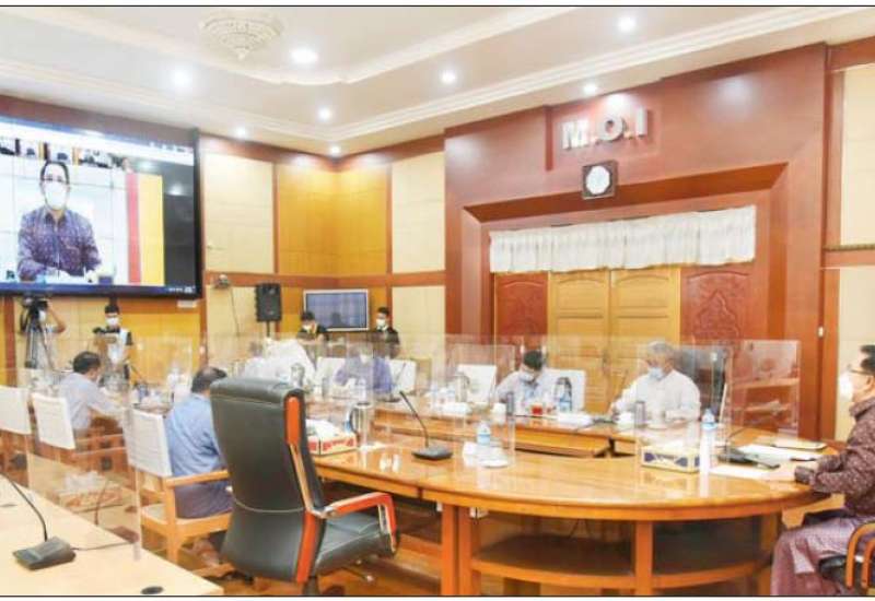 တိုင်းဒေသကြီး/ပြည်နယ်များ၏၂၀၂၁ ခုနှစ် အောက်တိုဘာလမှ ၂၀၂၂ ခုနှစ် မတ်လအထိ ခြောက်လအတွက် အရအသုံးခန့်မှန်းခြေငွေစာရင်း စိစစ်ညှိနှိုင်းခြင်းဆိုင်ရာ အစည်းအဝေးကို ယမန်နေ့နံနက်ပိုင်းတွင် စီမံကိန်းနှင့် ဘဏ္ဍာရေးဝန်ကြီးဌာန၌ ဗီဒီယိုကွန်ဖရင့်စနစ်ဖြင့် ကျင်းပသည်။