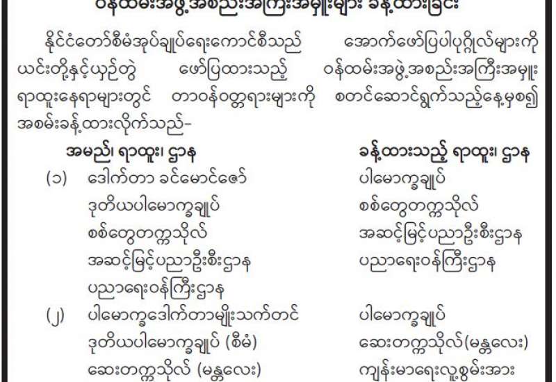 လူဝင်မှုကြီးကြပ်ရေးနှင့် ပြည်သူ့အင်အားဝန်ကြီးဌာနမှ အကောင်အထည်ဖော်ဆောင်ရွက် လျက်ရှိသည့် ပန်းခင်းစီမံချက်ဖြင့် အိမ်ထောင်စုလူဦးရေစာရင်းနှင့် နိုင်ငံသားစိစစ်ရေးကတ်ပြား ထုတ်ပေးခြင်းလုပ်ငန်းနှင့် ချိတ်ဆက်ဆောင်ရွက်နိုင်မည့် အီလက်ထရောနစ်စနစ်ဖြင့် လူဦးရေ မှတ်ပုံတင်ခြင်းစနစ် (e-IDစနစ်) လုပ်ငန်းဆိုင်ရာ ရှင်းလင်းဆွေးနွေးခြင်းကို ဩဂုတ် ၁၃ ရက်၊ မွန်းလွဲ (၂)နာရီက နေပြည်တော်ရှိ ဝန်ကြီးဌာန၊ အစည်းအဝေးခန်းမ၌ ကျင်းပသည်။