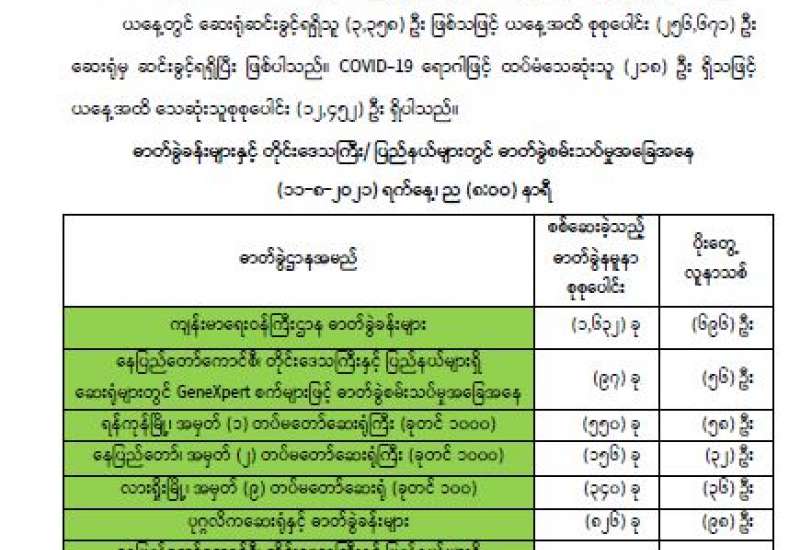 ကိုဗစ်-၁၉ ရောဂါ ကာကွယ်၊ ထိန်းချုပ်၊ ကုသရေးလုပ်ငန်းများတွင် အသုံးပြုရန် ဆောက်လုပ်ရေးဝန်ကြီးဌာန ဝန်ထမ်းမိသားစုများနှင့် နေပြည်တော် အိမ်ရာတည်ဆောက်ရေး အဖွဲ့များက နေပြည်တော် ပြည်သူ့ဆေးရုံကြီး (ခုတင်-၁၀၀၀) သို့ အောက်ဆီဂျင်အိုးကြီး (40 Liter) အလုံး ၆၀ နှင့် အလှူငွေကျပ် ၁၂၅ သိန်း စုစုပေါင်းတန်ဖိုးငွေကျပ် ၂၇၅ သိန်း ပေးအပ် လှူဒါန်းပွဲ အခမ်းအနားကို ယနေ့နံနက် ၁၁ နာရီတွင် အဆိုပါဆေးရုံကြီး အုပ်ချုပ်မှုဆောင် အစည်းအဝေးခန်းမ၌ ကျင်းပသည်။
