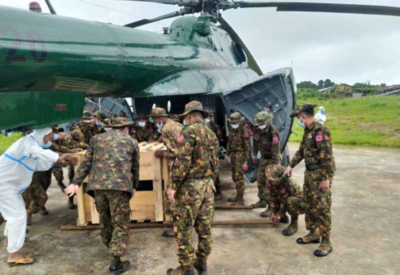 ကိုဗစ်-၁၉ ရောဂါဓာတ်ခွဲအတည်ပြု ပိုးတွေ့လူနာများနှင့် သီးသန့်စောင့် ကြည့်ရမည့်သူများကို ကုသရေးလုပ်ငန်းများ ဆောင်ရွက်ရာတွင် အောက်ဆီဂျင် လိုအပ်ချက်များကို တစ်ဖက်တစ်လမ်းမှ အထောက်အကူပြုစေရန်အတွက် တပ်မတော် နှင့် အလှူရှင်များက အောက်ဆီဂျင်အိုးများ၊ ရောဂါကာကွယ်ရေး အထောက် အကူပြုပစ္စည်းများနှင့် အာဟာရဖြည့်စားသောက်ဖွယ်ရာများကို တိုင်းဒေသကြီးနှင့် ပြည်နယ်အသီးသီးရှိ ပြည်သူ့ဆေးရုံများ၊ တပ်မတော်ဆေးရုံများ၊ ကျန်းမာရေးဌာနများ၊ ကိုဗစ်စင်တာများနှင့် လူမှုကူညီရေး အသင်းအဖွဲ့များသို့ ပေးပို့လှူဒါန်းလျက်ရှိသည်။