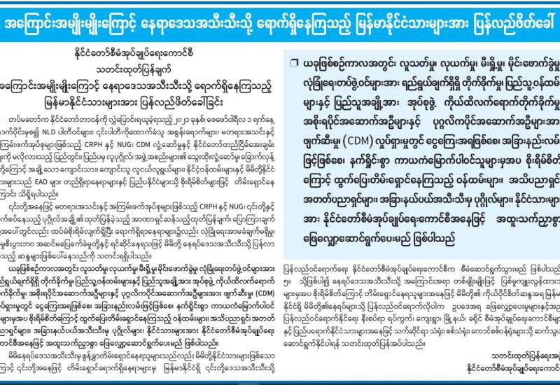 ကိုဗစ်-၁၉ ရောဂါ တတိယလှိုင်း ဖြစ်ပွားမှုကြောင့် ရောဂါကာကွယ်၊ ထိန်းချုပ်၊ ကုသရေးလုပ်ငန်းများ ဆောင်ရွက်နေချိန်တွင် ဒေသတွင်း စားနပ်ရိက္ခာ ဖူလုံရေးနှင့် ပြည်သူများ၏ စားသောက်ရေးကို အထောက်အကူဖြစ်စေရန် အတွက် တိုင်းစစ်ဌာနချုပ် နယ်မြေအသီးသီးရှိ အစိုးရ၊ တပ်မတော်နှင့် ပုဂ္ဂလိကပိုင် ဒေသတွင်းစိုက်ပျိုးမွေးမြူရေးနှင့် အခြားလူသုံးကုန်လုပ်ငန်းများ ကုန်ထုတ်လုပ်မှုရာနှုန်းပြည့် ထုတ်လုပ်နိုင်ရေး ဆောင်ရွက်လျက်ရှိရာ တိုင်း ဒေသကြီးနှင့် ပြည်နယ်အသီးသီးမှ ဝန်ကြီးချုပ်များ၊ တိုင်းမှူးများနှင့် တာဝန်ရှိ သူများက အဆိုပါနေရာများသို့ သွားရောက်ကြည့်ရှုကြပြီး လိုအပ်သည်များ ဖြည့်ဆည်းဆောင်ရွက် ပေးလျက်ရှိသည်။