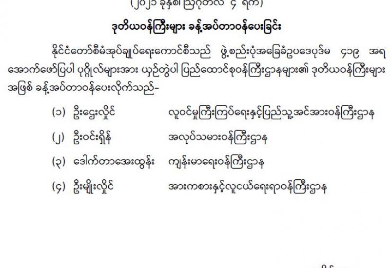 ဝန်ကြီးဌာန၊ အဖွဲ့အစည်းများ သိရှိလိုက်နာ ဆောင်ရွက်ရမည့် ရာထူးတိုးမြှင့်ခြင်းဆိုင်ရာ လုပ်ထုံး လုပ်နည်းများ သင်တန်းကို ဩဂုတ် ၂ ရက်တွင် စက်မှုဝန်ကြီးဌာန၌ Virtual စနစ်ဖြင့် ကျင်းပသည်။