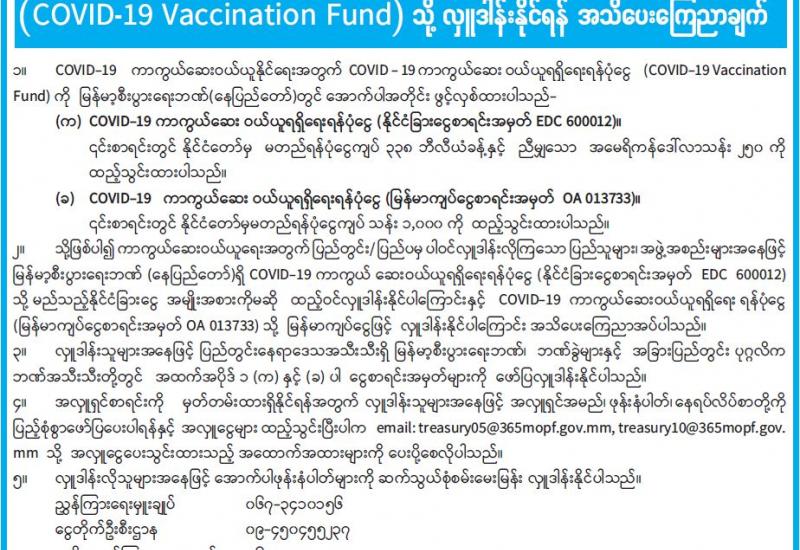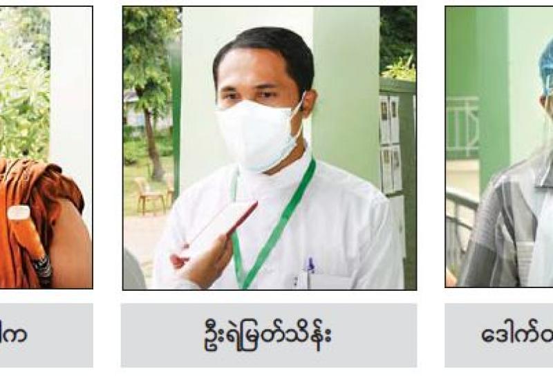 နေပြည်တော်ကောင်စီနယ်မြေ မြို့နယ် ၈ မြို့နယ်ရှိ အသက် ၆၅ နှစ်နှင့်အထက် ရှိသူများ၊ ကိုဗစ်-၁၉ ကာကွယ်၊ ထိန်းချုပ်၊ ကုသရေးလုပ်ငန်းများတွင် ရှေ့တန်းမှ တာဝန်ထမ်းဆောင်နေကြသည့် ကျန်းမာရေးဝန်ထမ်းများနှင့် ပုဂ္ဂလိကကျန်းမာရေး ဝန်ထမ်းများ၊ သာသနာ့ဝန်ထမ်းများ၊ စေတနာ့ဝန်ထမ်းများ၊ ကာကွယ်ဆေးမထိုးရသေးသော နိုင်ငံ့ဝန်ထမ်းများ၊ ပုဂ္ဂလိက ဘဏ်ဝန်ထမ်းများ၊ ပုဂ္ဂလိကစက်ရုံ/ အလုပ်ရုံဝန်ထမ်းများ၊ ဟိုတယ်/မိုတယ်/ တည်းခိုခန်းများမှ ဝန်ထမ်းများ၊ စူပါမားကတ်များ ဈေးများမှ ဝန်ထမ်းများအား ကိုဗစ်-၁၉ ကာကွယ်ဆေးများကို ထိုးနှံပေးလျက်ရှိရာ ယင်းသို့ ကာကွယ်ဆေးထိုးနှံခြင်း လုပ်ငန်း များ အဆင်ပြေချောမွေ့စွာ ဆောင်ရွက်နိုင်ရန် ဆေးထိုးနှံမှုလုပ်ငန်းစဉ်များကို ကြီးကြပ်ပေးနေသည့် မြို့နယ်အုပ်ချုပ်ရေးမှူးများ နှင့် ဆေးလာရောက်ထိုးနှံကြသူများ၏ ပြောကြားချက်များကို တင်ပြလိုက်ပါသည်။