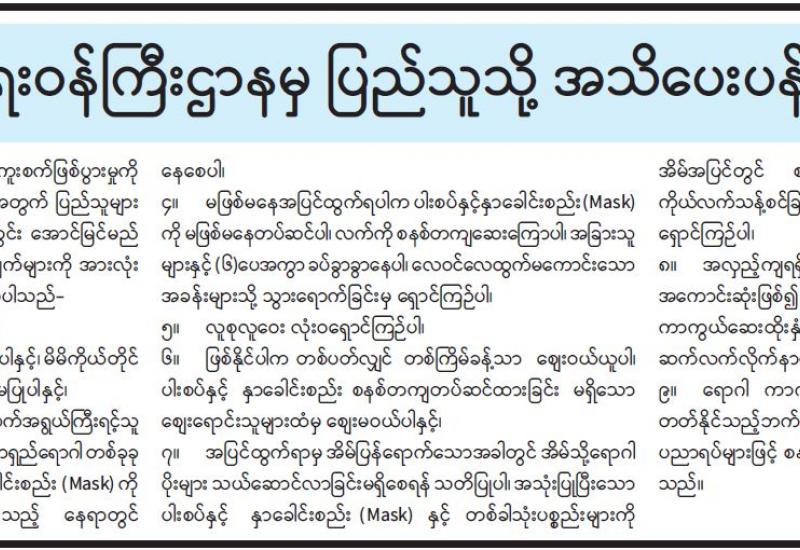 နိုင်ငံတော်အစိုးရအနေဖြင့် ကိုဗစ်-၁၉ ရောဂါ (တတိယလှိုင်း) ကူးစက်ပြန့်ပွားမှု မဖြစ်ပွားမီကာလကပင် လိုအပ်သည့် ကြိုတင်ပြင်ဆင်စုဖွဲ့မှုများကို လုပ်ဆောင်ခဲ့ပြီး ကူးစက်ပြန့်ပွားမှုဖြစ်ပေါ်လာသည့်ကာလအတွင်းတွင်လည်း အတည်ပြုလူနာ၊ စောင့်ကြည့်လူနာ များအား ကျန်ရှိသည့် တာဝန်သိကျန်းမာရေးဝန်ထမ်းများ၊ လူမှုကူညီကယ် ဆယ်ရေးအသင်း အဖွဲ့များနှင့် တပ်မတော်သားကျန်းမာရေးအဖွဲ့များ ပူးပေါင်း၍ ကုသရေးလုပ်ငန်းများကို အင်တိုက်အားတိုက် ဆောင်ရွက်ခဲ့သည်။ ၎င်းအပြင် ရောဂါကူးစက်မှုအရ အရေးပေါ်လိုအပ် လာသည့် အောက်ဆီဂျင်များကို လုံလောက်စွာ ပေးဝေနိုင်ရေးအတွက် ပြည်တွင်းရှိ နိုင်ငံပိုင်နှင့် ပုဂ္ဂလိကပိုင် စက်ရုံ၊ အလုပ်ရုံများမှ တိုးမြှင့်ထုတ်လုပ်ခြင်း၊ ပြည်ပမှလျင်မြန်စွာတင်သွင်းခွင့်ပြုခြင်း စသည်တို့ဖြင့် ပြည်သူလူထု၏ အသက်အိုးအိမ်ကို ထိခိုက်ဆုံးရှုံးမှုမရှိစေရေး အလေးထားဆောင်ရွက် ခဲ့သည်။