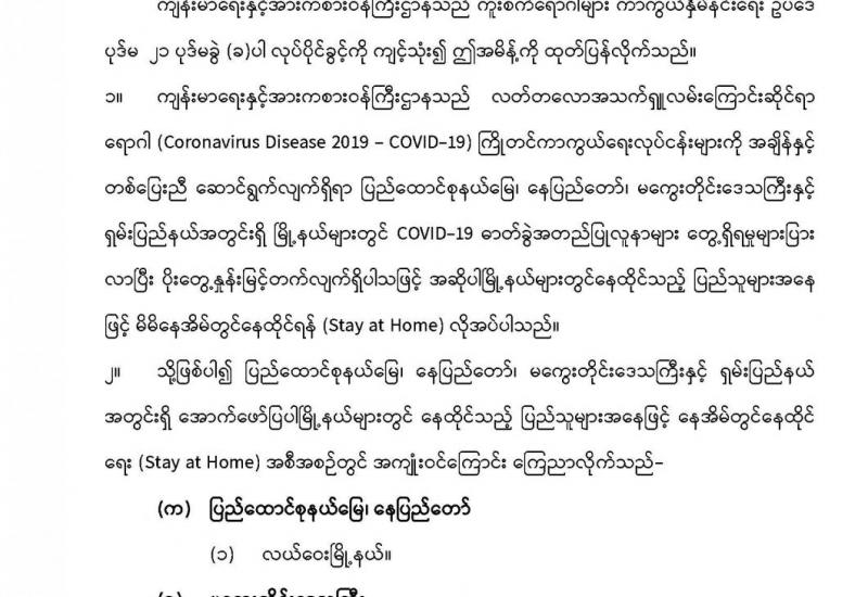 မြန်မာ့အသံနှင့်ရုပ်မြင်သံကြားမှ ဇူလိုင် ၂၄ ရက် ည ၈ နာရီ သတင်းအပြီးတွင် ထုတ်လွှင့်ပြသခဲ့သည့် ကိုဗစ်-၁၉ ရောဂါ ကာကွယ်ထိန်းချုပ်ရေးဆိုင်ရာ ဆောင်ရွက်ချက်များအကြောင်း သိကောင်းစရာ အစီအစဉ်ကို ပြည်သူများ သိရှိနိုင်ရန်အတွက် ပြန်လည် ဖော်ပြလိုက်ပါသည်။