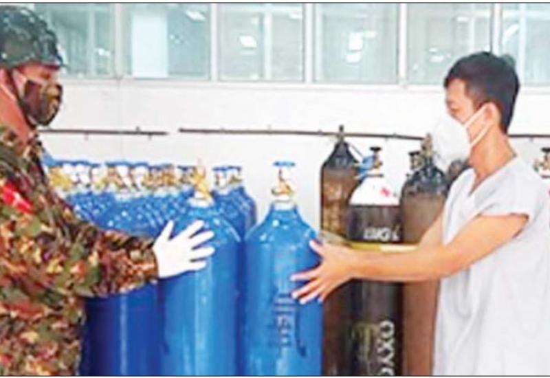 ကိုဗစ်-၁၉ရောဂါဓာတ်ခွဲအတည်ပြု ပိုးတွေ့ လူနာများ နှင့် သီးသန့်စောင့်ကြည့်ရမည့်သူများကို ကုသရေး လုပ်ငန်းများ ဆောင်ရွက်ရာတွင် အောက်ဆီဂျင် လိုအပ်ချက်များကို တစ်ဖက်တစ်လမ်းမှ အထောက် အကူပြုစေရန်အတွက် တပ်မတော်နှင့် အလှူရှင်များ က အောက်ဆီဂျင်အိုးများကို တိုင်းဒေသကြီးနှင့် ပြည်နယ်အသီးသီးရှိ ပြည်သူ့ဆေးရုံများ၊ တပ်မတော်ဆေးရုံများ၊ ကျန်းမာရေး ဌာနများနှင့် ကိုဗစ်စင်တာ များသို့ ပေးပို့လှူဒါန်းလျက်ရှိသည်။