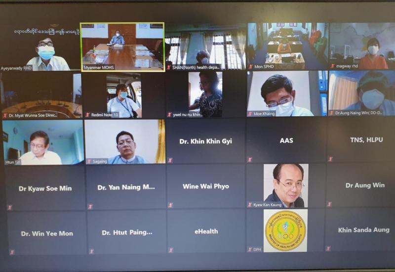 ကျန်းမာရေးနှင့်အားကစားဝန်ကြီးဌာန ကိုဗစ်-၁၉ ရောဂါကာကွယ်၊ ထိန်းချုပ်၊ ကုသရေး လုပ်ငန်း အရှိန်အဟုန်မြှင့်တင်ရေး ညှိနှိုင်းအစည်းအဝေးကို ယနေ့မွန်းလွဲပိုင်းတွင် ရုံးအမှတ် (၄)၊ ကျန်းမာရေးနှင့် အားကစားဝန်ကြီးဌာန နေပြည်တော်၌ Video Conference ကျင်းပရာ ပြည်ထောင်စုဝန်ကြီး ဒေါက်တာသက်ခိုင်ဝင်း တက်ရောက်သည်။