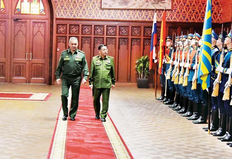 (၉) ကြိမ်မြောက်နိုင်ငံတကာလုံခြုံရေးဆိုင်ရာညီလာခံ (Moscow Conference on International Security-2021(MCIS-2021)) သို့ တက်ရောက်ရန်အတွက် ရုရှားဖက်ဒရေးရှင်းနိုင်ငံ၌ ရောက်ရှိနေ သည့် နိုင်ငံတော်စီမံအုပ်ချုပ်ရေးကောင်စီဥက္ကဋ္ဌ၊ တပ်မတော်ကာကွယ်ရေးဦးစီးချုပ် ဗိုလ်ချုပ်မှူးကြီး မင်းအောင်လှိုင် အား ရုရှားဖက်ဒ ရေးရှင်းနိုင်ငံ၊ ကာကွယ်ရေးဝန်ကြီး Army General Sergey Kuzhugetovich Shoigu က ဇွန် ၂၂ ရက် ညနေပိုင်းတွင် ဂုဏ်ပြုတပ်ဖွဲ့ဖြင့် ကြိုဆိုသည်။